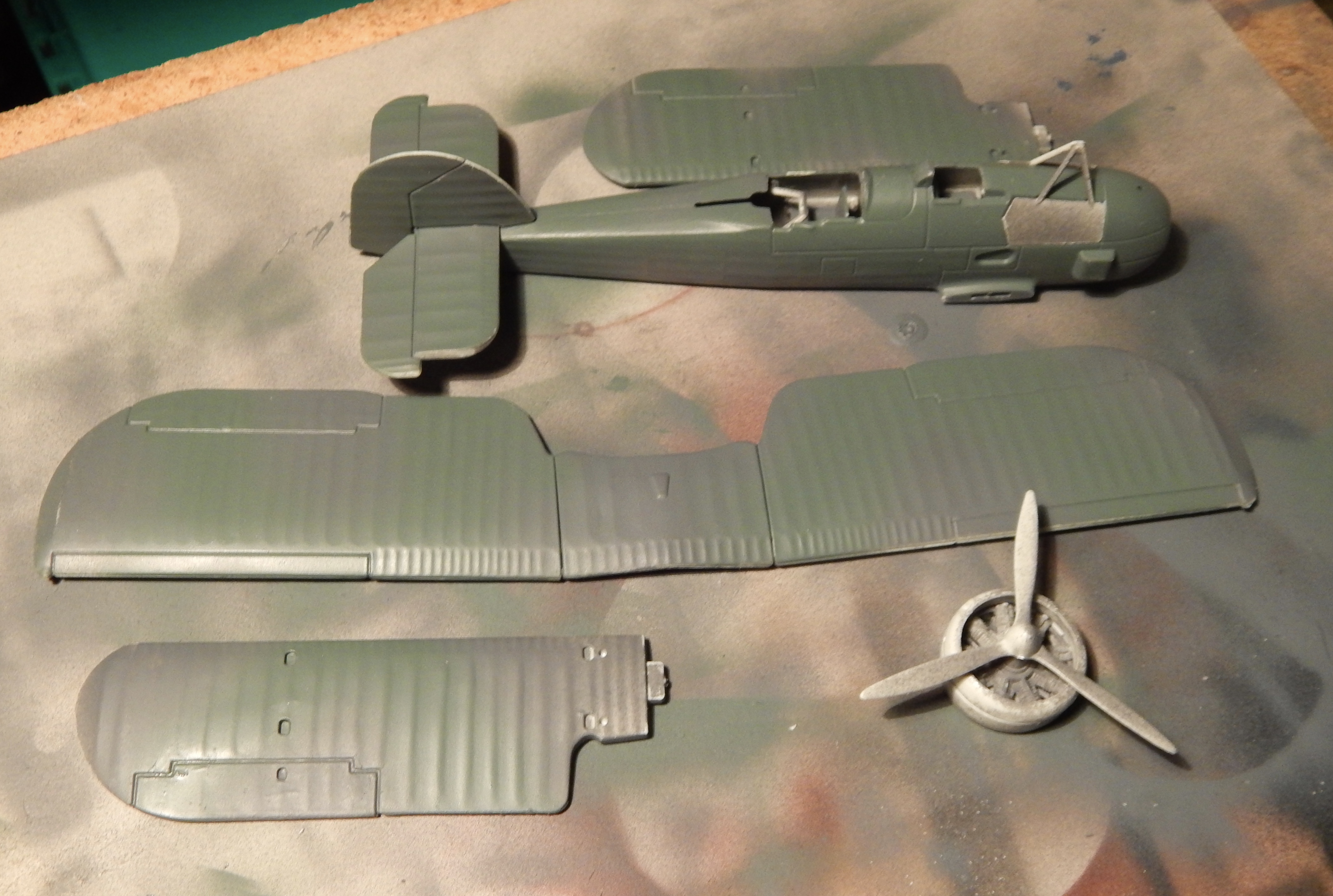 The wings are assembled and the parts given a coating of grey